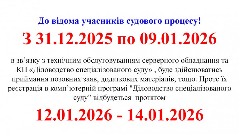 УВАГА! У РАЗІ НАПРАВЛЕННЯ ЛИСТІВ ЕЛЕКТРОННОЮ ПОШТОЮ В ТЕМІ ЛИСТА НЕОБХІДНО ВКАЗАТИ ПРІЗВИЩЕ СУДДІ, В ПРОВАДЖЕННІ ЯКОГО ПЕРЕБУВАЄ СПРАВА.