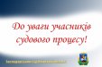 До уваги учасників процесу та відвідувачів суду!